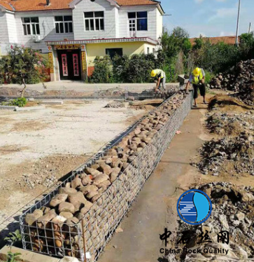 由于賓格石籠,已經(jīng)在工廠折疊成了網(wǎng)籠,在施工現(xiàn)場,只需組裝,放入石塊后捆扎好即可施工。
