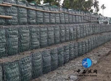 石籠網(wǎng)是使填石固定就位的鐵絲或聚合物絲網(wǎng)格式制作物。鐵絲籠是由鐵絲編織的網(wǎng)格或焊接而成的結(jié)構(gòu)物。這兩種結(jié)構(gòu)可以是電鍍的,編織的鐵絲箱可另外涂上PVC。用抗風(fēng)化堅(jiān)硬石塊作填料,它在石箱或石籠沉排中不會(huì)因磨蝕而很快破碎。裝有不同類型的塊石的石籠有不同的特性。多角的塊石能相互很好地聯(lián)鎖在一起,用其填裝的石籠不易變形。