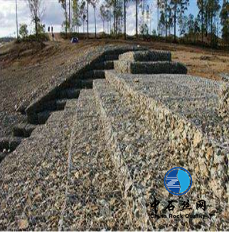 (4)考慮到填充料的沉降,頂面填充石料宜適當(dāng)高出石籠2-3cm,且必須密實(shí),空隙處應(yīng)以適當(dāng)?shù)男∷槭钊?。以增加石籠容重。